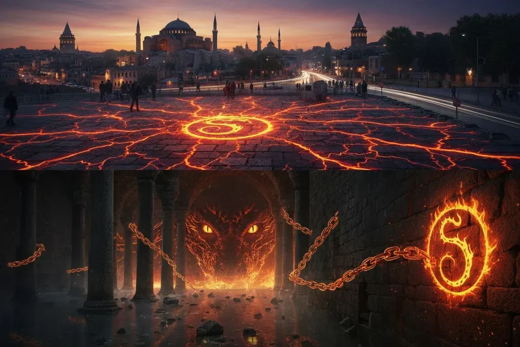 Workers in Beyoğlu drill deep. The machine hits a hard spot. Sparks fly from the old seal. The air smells like sulfur. Rumble goes up to Taksim Square. Tourists take photos of the Galata Tower. They miss the danger. That night, power fails in the Grand Bazaar. Vendors get mad in dark stalls. Underground, Cevıırı wakes. Dragon from 1453, trapped during the city’s fall. Eyes open after a long sleep.